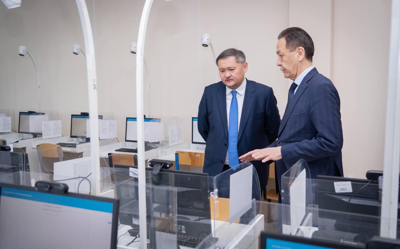Министр науки и высшего образования РК Саясат Нурбек посетил один из центров тестирования в Астане. Он ознакомился с ходом проведения ЕНТ и пожелал удачи будущим студентам.