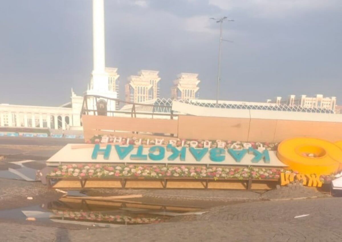 По информации Telegram-канала Qumash, инцидент произошел 26 мая вечером. Инсталляцию у столичного Дворца мира и согласия “30 лет Независимости” сдуло ветром.