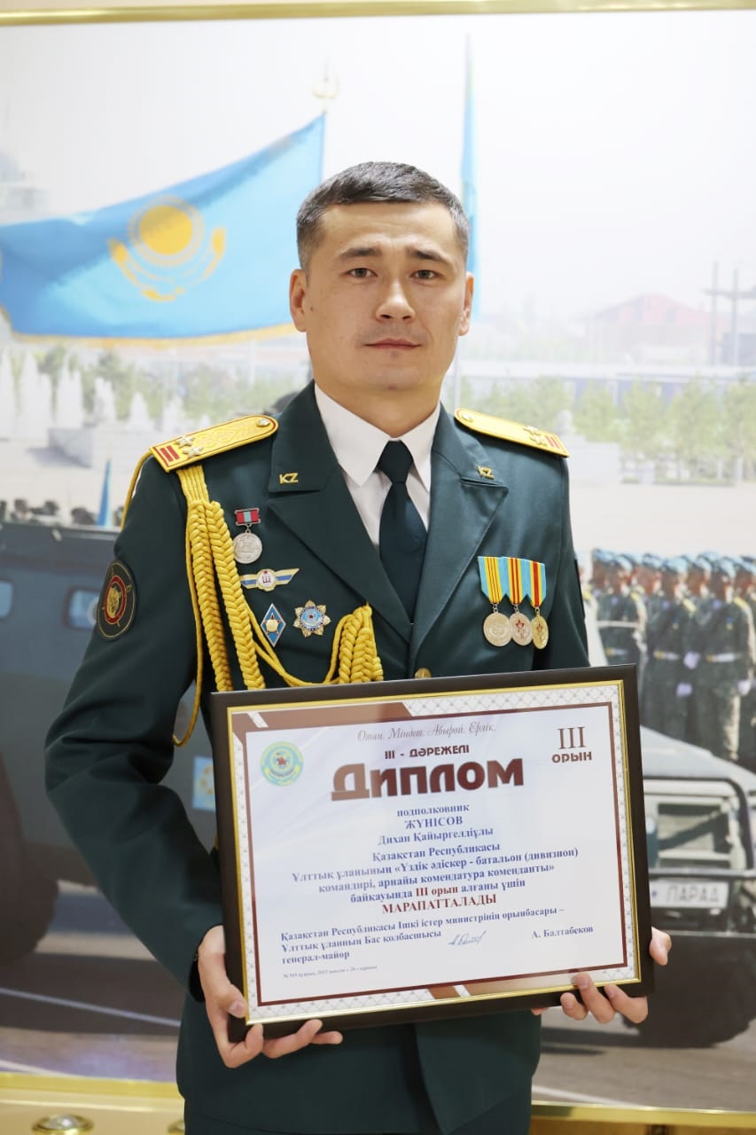 “Кроме того, наша часть регулярно привлекается для обеспечения крупных общественно-политических и спортивных мероприятий, проводимых в столице. Надо отметить, что в 2023 году личный состав выполнял задачи по ликвидации паводков в Атырауской области. При подведении итогов службы все это учитывалось. В прошлом году по итогам боевой службы наш батальон удостоился второго места, в этом году я на смотре-конкурсе командиров батальонов стал лучшим комбатом-методистом среди воинских частей регионального командования”, - рассказал командир батальона.