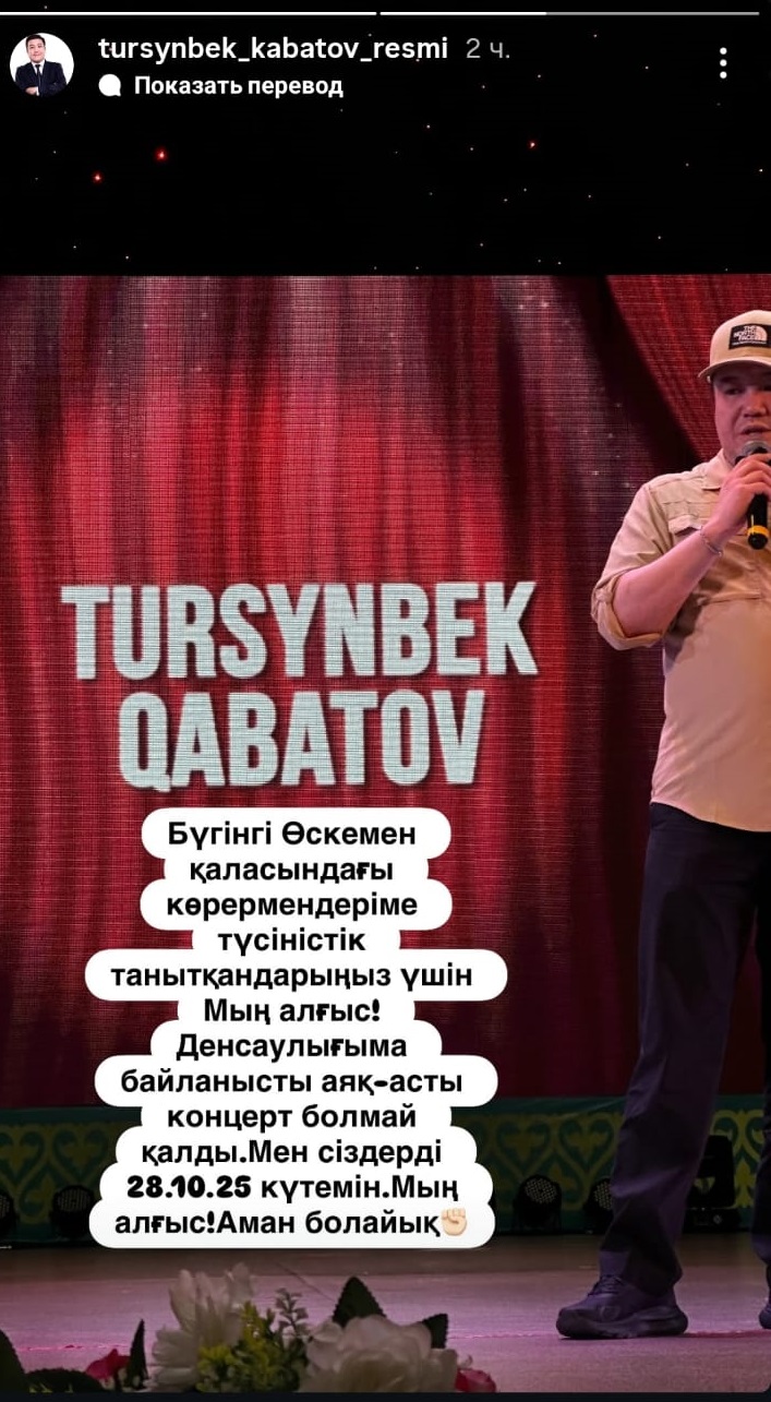 Напомним, год назад, в октябре 2024 года, Турсынбек Кабатов перенес концерты из-за болезни. Тогда он сообщил, что «попал в больницу по состоянию здоровья».