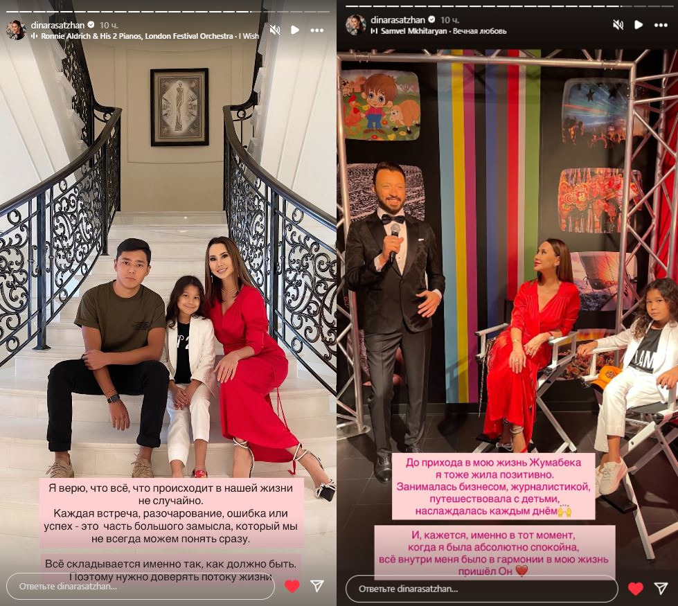 “Нужно доверять потоку жизни. До прихода в мою жизнь Жумабека я тоже жила позитивно… И, кажется, именно в тот момент, когда я была абсолютно спокойна, все внутри меня было в гармонии, в мою жизнь пришел Он”, – пишет Динара Сатжан.