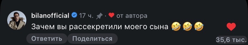 Сам Дима Билан с юмором отреагировал на публикацию и прокомментировал видео: “Зачем вы рассекретили моего сына?”.