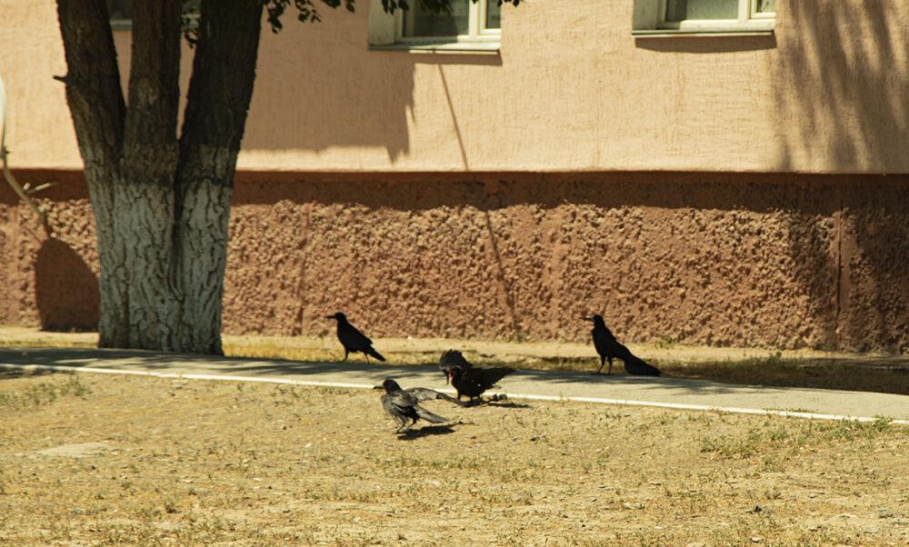 Забавный факт: в городе полно ворон, их карканье сопровождало нас буквально весь день. Судя по большому количеству скворечников, другие птицы тут тоже водятся, но их, видимо, распугали вороны или шум от военных учений.