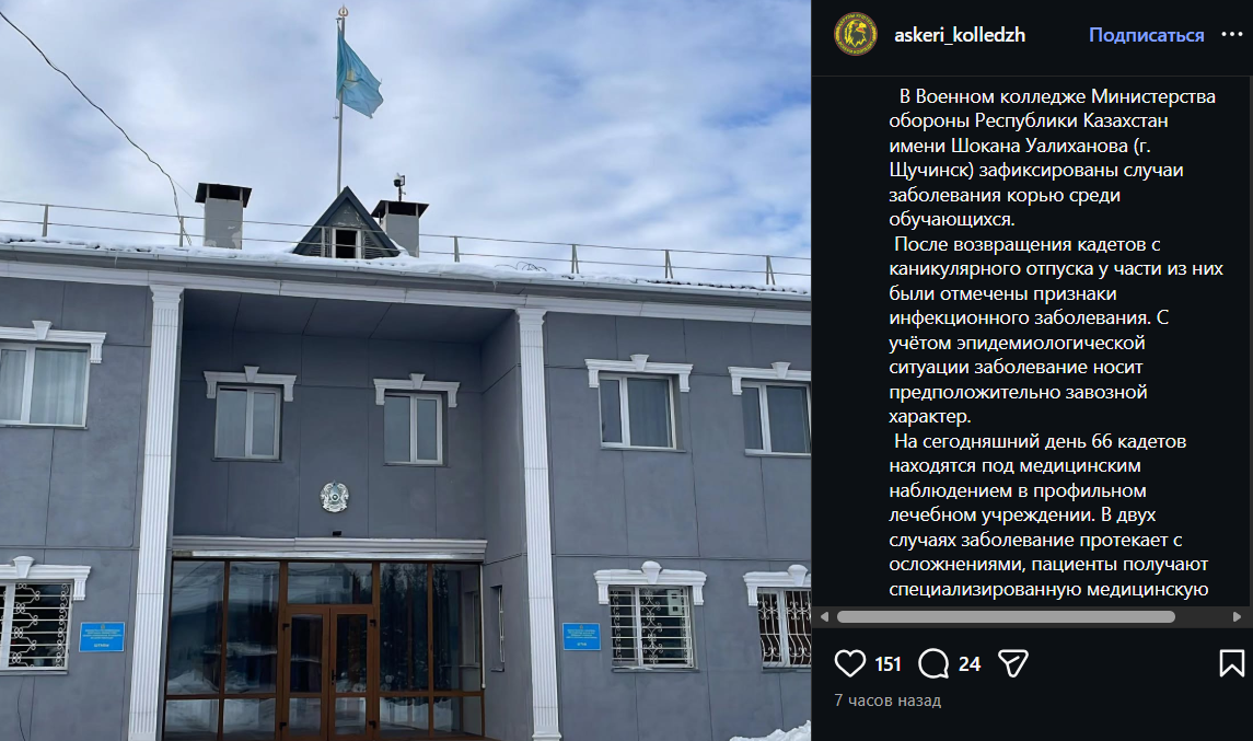 В военном колледже Министерства обороны Республики Казахстан имени Шокана Уалиханова в городе Щучинске зафиксированы случаи заболевания корью среди обучающихся, передает Liter.kz.