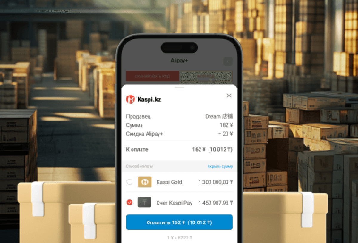Теперь ИП могут делать оплату прямо со своего счета Kaspi Pay в сервисе Alipay+ в приложении Kaspi.kz. Это удобно и полностью соответствует требованиям валютного законодательства.