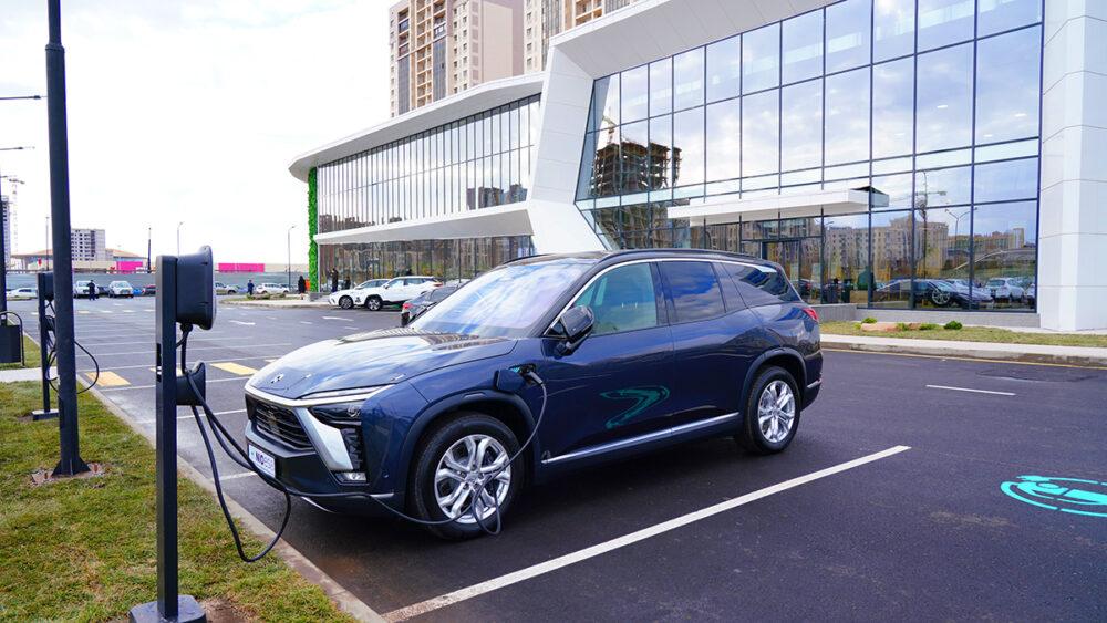 Аскару Мамину продемонстрировали модели электромобилей JAC IEVS4 и JAC IEV7S, а также полноразмерные кроссоверы NIO ES6 и NIO ES8.