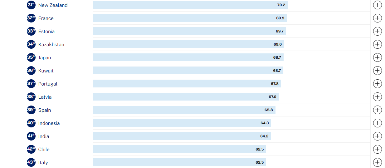 Казахстан занял 34-место в мировом рейтинге конкурентоспособности IMD 2025, который ежегодно публикует Швейцарский институт управления, передает Liter.kz.