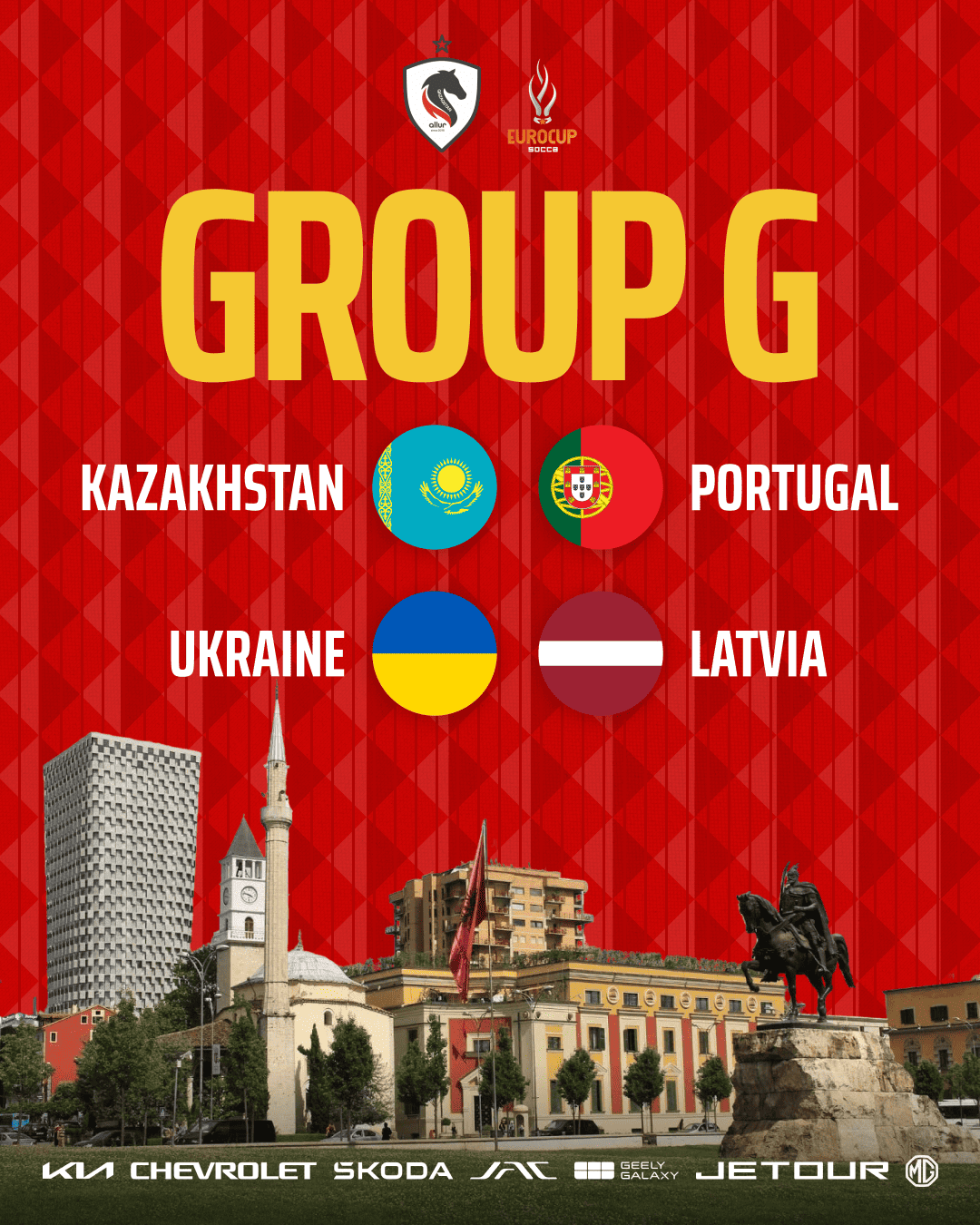 По итогам официальной жеребьевки казахстанская сборная, сформированная на базе AFC Allur, попала в группу G, где сыграет против сборных Португалии, Латвии и Украины. Уже на групповом этапе команду ждут напряженные и принципиальные матчи с соперниками высокого уровня.