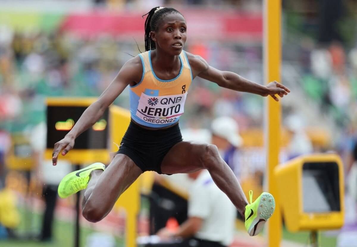 Бегунья Нора Джеруто специализируется на стипль-чезе. Это дисциплина, относящаяся к средним дистанциям беговой легокатлетической программы. Включает бег между препятствиями, преодоление препятствий и преодоление ямы с водой. Выступала за Кению и стала победительницей чемпионата Африки 2016 года. С 29 января 2022 года получила право представлять национальную команду Казахстана на международных стартах. На чемпионате мира 2022, представляя Казахстан, стала победительницей в забеге на 3000 метров с препятствиями, установив рекорд соревнований.