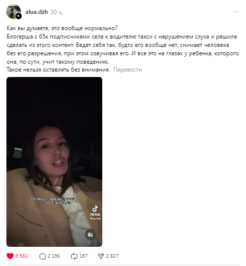 Казахстанская блогерша высмеяла слабослышащего таксиста, чем разгневала Казнет