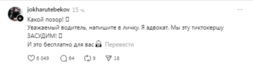 Казахстанцы после публикации видео выступают против блогерши. В социальной сети Threads массово жалуются на страницу и требуют, чтобы с ней разорвали контракты рекламодатели, некоторые предложили оказать водителю юридическую поддержку и выразили свое мнение в комментариях.