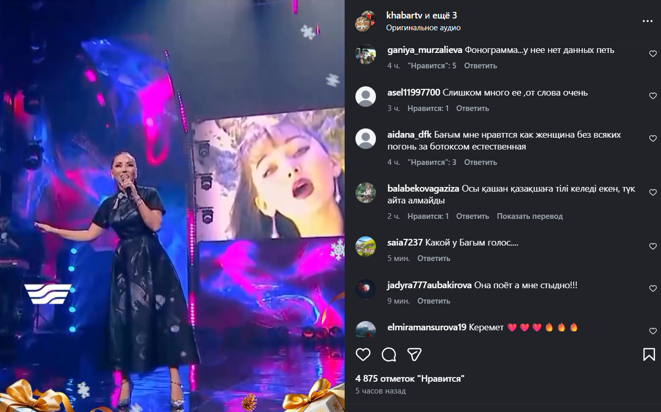Видео с их совместного выступления появилось в сети. Особое внимание комментаторов привлек вокал продюсера. Часть казахстанцев усомнилась в том, что в композиции звучал именно голос Баян: