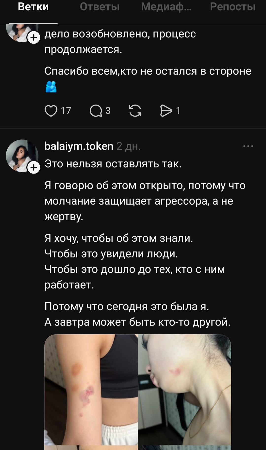 Девушка утверждает, что обращалась в полицию. Однако, как она пишет, дело было закрыто. Позже она рассказала, что дело возобновлено.