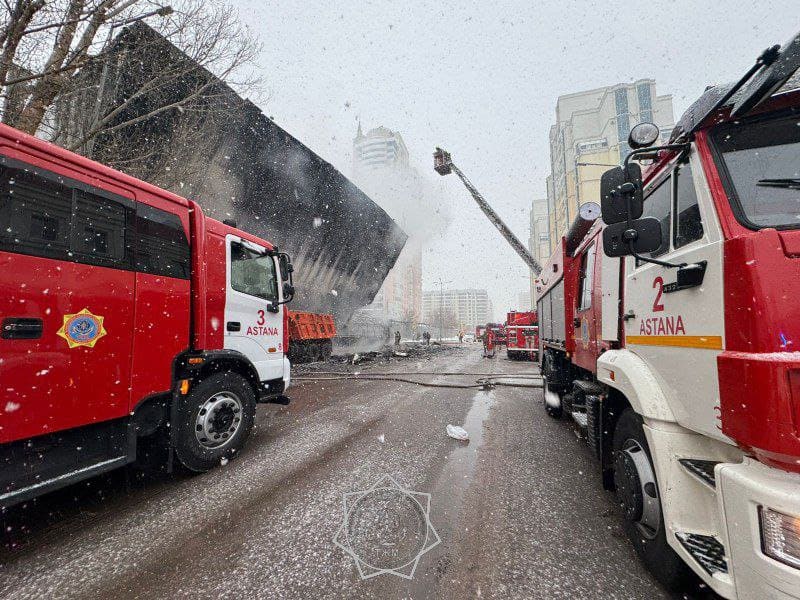 Кинотеатр загорелся в Астане из-за сильного пожара соседнего здания