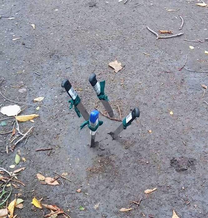 На место вызвали полицию. Сотрудники Юго-Восточного отдела полиции ищут того, кто воткнул ножи в землю.