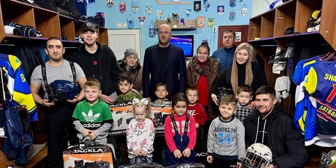 Комплекты экипировки подарили юным сатпаевским хоккеистам