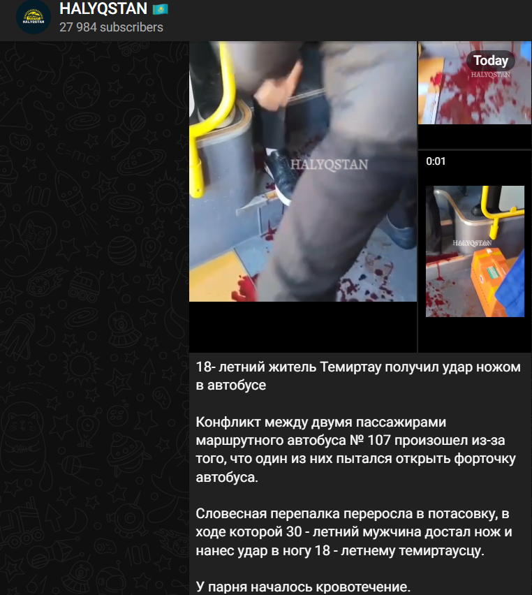 Конфликт в автобусе Темиртау закончился поножовщиной