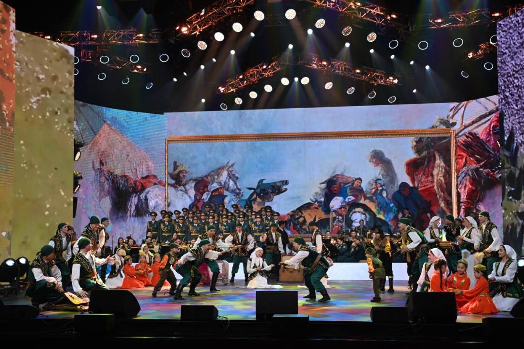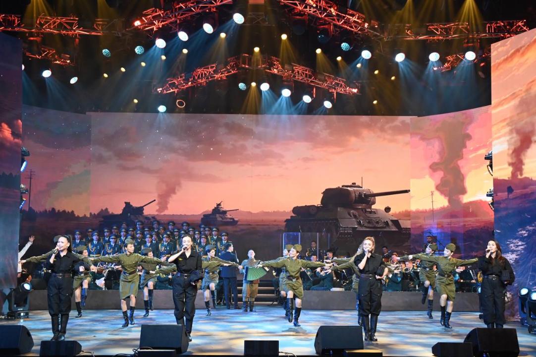 Известные казахстанские деятели культуры, ведущие артисты, оркестровые, хоровые и танцевальные коллективы исполнили для военнослужащих, ветеранов Вооруженных сил, воспитанников военного колледжа и участников военно-патриотического движения “Жас сарбаз” патриотические композиции и песни военных лет. В исполнении эстрадно-симфонического оркестра и фольклорно-этнографического ансамбля прозвучал кюй Нургисы Тлендиева “Ата толғауы”. Соединив мелодии казахской степи и мощь оркестровой музыки, объединенный творческий коллектив искусно передал жизнеутверждающее мироощущение великого композитора.
