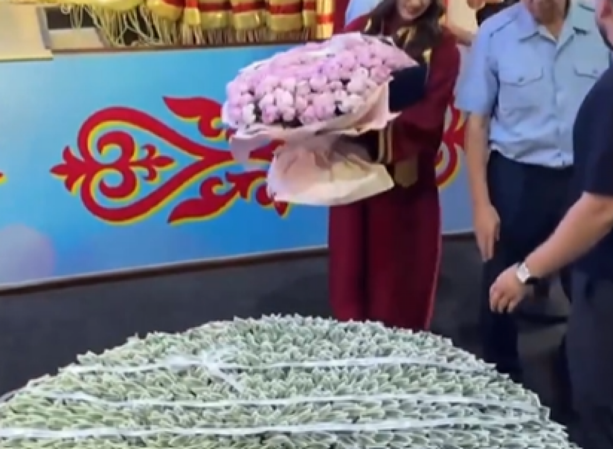 Корзину с долларами подарили выпускнице в Шымкенте (ВИДЕО)