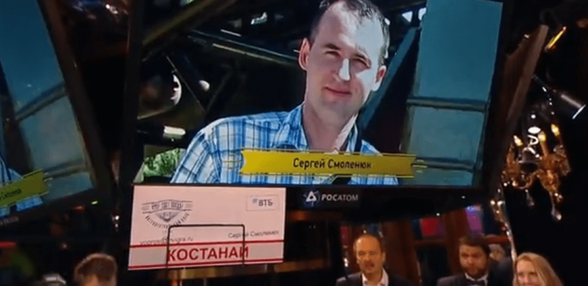 Костанаец отправил на телеигру всего 1100 вопросов, из них восемь были озвучены знатокам клуба. Победу Сергей Смоленюк одержал во второй раз.