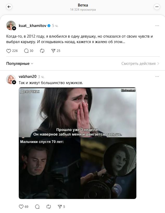 Пользователи сети по-разному отреагировали на его признание. Кто-то вспомнил, что он был неравнодушен к волейболистке Сабине Алтынбековой, другие отметили, что любовь не всегда главное в жизни: