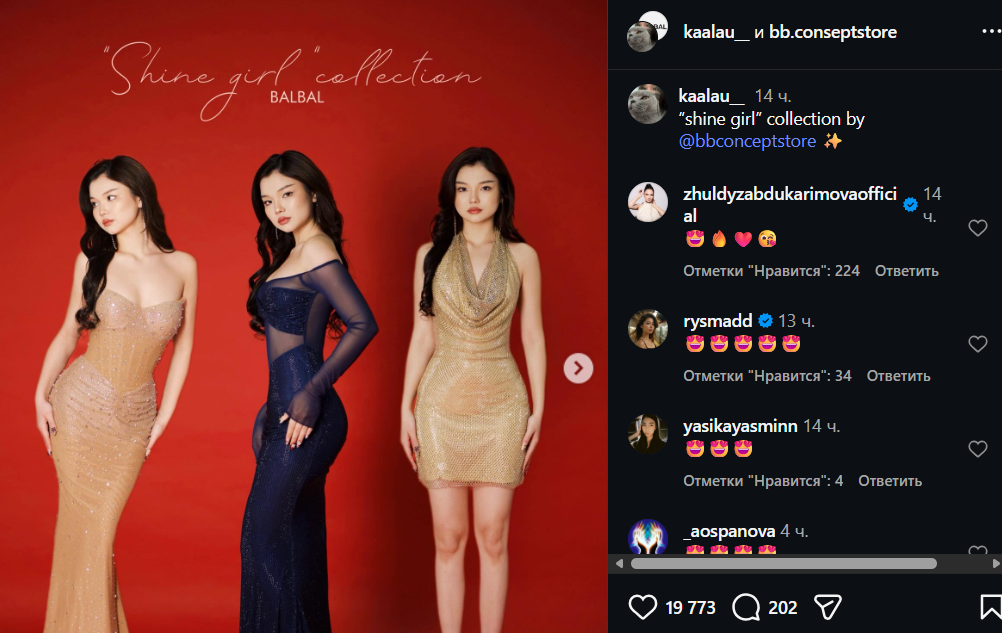 “Коллекция “сияющая девушка”, – подписала Алау фотографии.