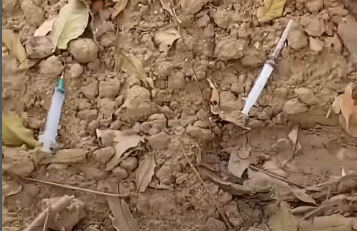 В социальных сетях появилось видео, как в яме неподвижно лежит человек, рядом с которым разбросаны шприцы.