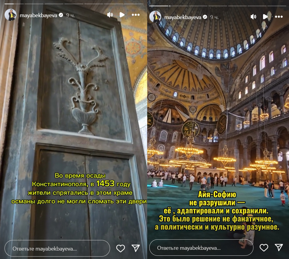 В Instagram-stories она рассказала о знаменитом соборе Айя-Софии, который пережил смену империй, религий и эпох.