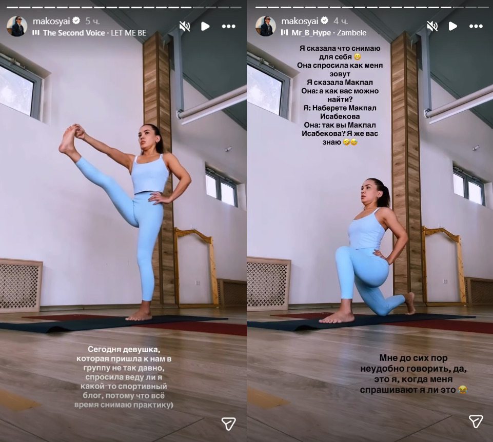 Казахстанская певица Макпал Исабекова поделилась забавной и немного неловкой ситуацией, которая произошла с ней на йоге, передает Liter.kz.