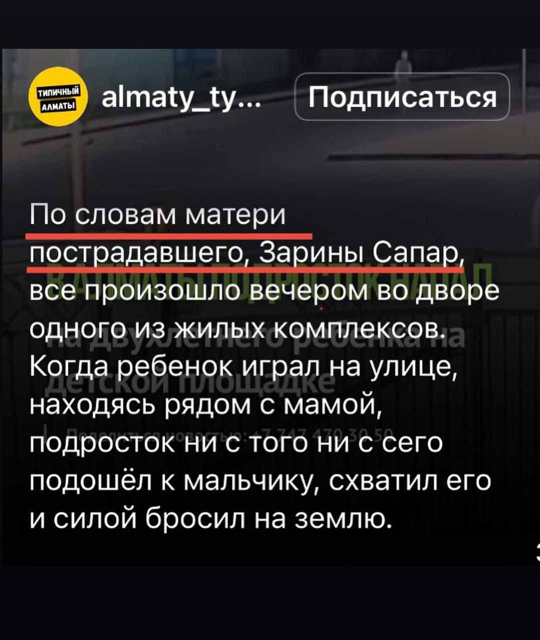 В официальном Instagram-аккаунте Ассоциации сообщается, что родители подростка с аутизмом с момента трагедии и до сегодняшнего дня не публиковали никакой информации, предлагали свою помощь и надеялись на мирное урегулирование вопроса. Однако в соцсетях продолжают появляться публикации матери пострадавшего. Кроме того, Ассоциация сообщает, что в видео со своего аккаунта в Instagram мама пострадавшего ребенка высказывается в защиту блогера Райхан Жумамуратовой, призывавшей к “убийству детей с аутизмом”.