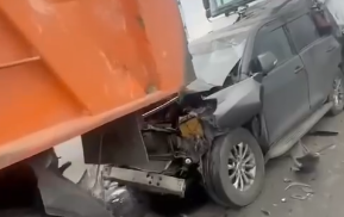 Судя по кадрам видео, распространившихся в социальных сетях, автомобиль оказался зажат между КамАЗом и бетономешалкой. Машина получила значительные повреждения.