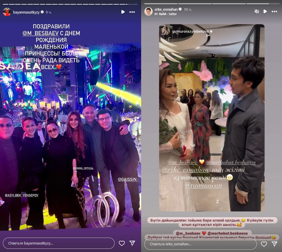 “Поздравили Мейрамбека с днем рождения маленькой принцессы. Была очень рада видеть всех”, – написала у себя в аккаунте продюсер Баян Алагузова.
