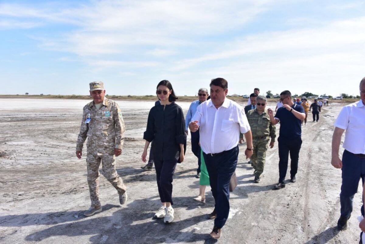 Министр экологии осмотрела высохшее розовое озеро в Павлодарской области