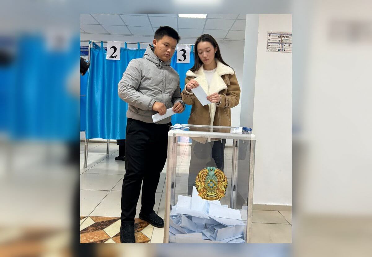 Спустя месяц супружеская пара пришла на выборы в селе Лабасы Коксуского района. К слову, Акжолу и Гулим по 18 лет – они родились в 2004 году. Это их первое голосование на выборах.