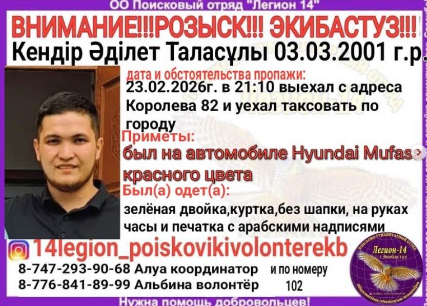 23 февраля около 21:00 в Экибастузе пропал 25-летний мужчина по имени Әділет Кендір, передает Liter.kz.