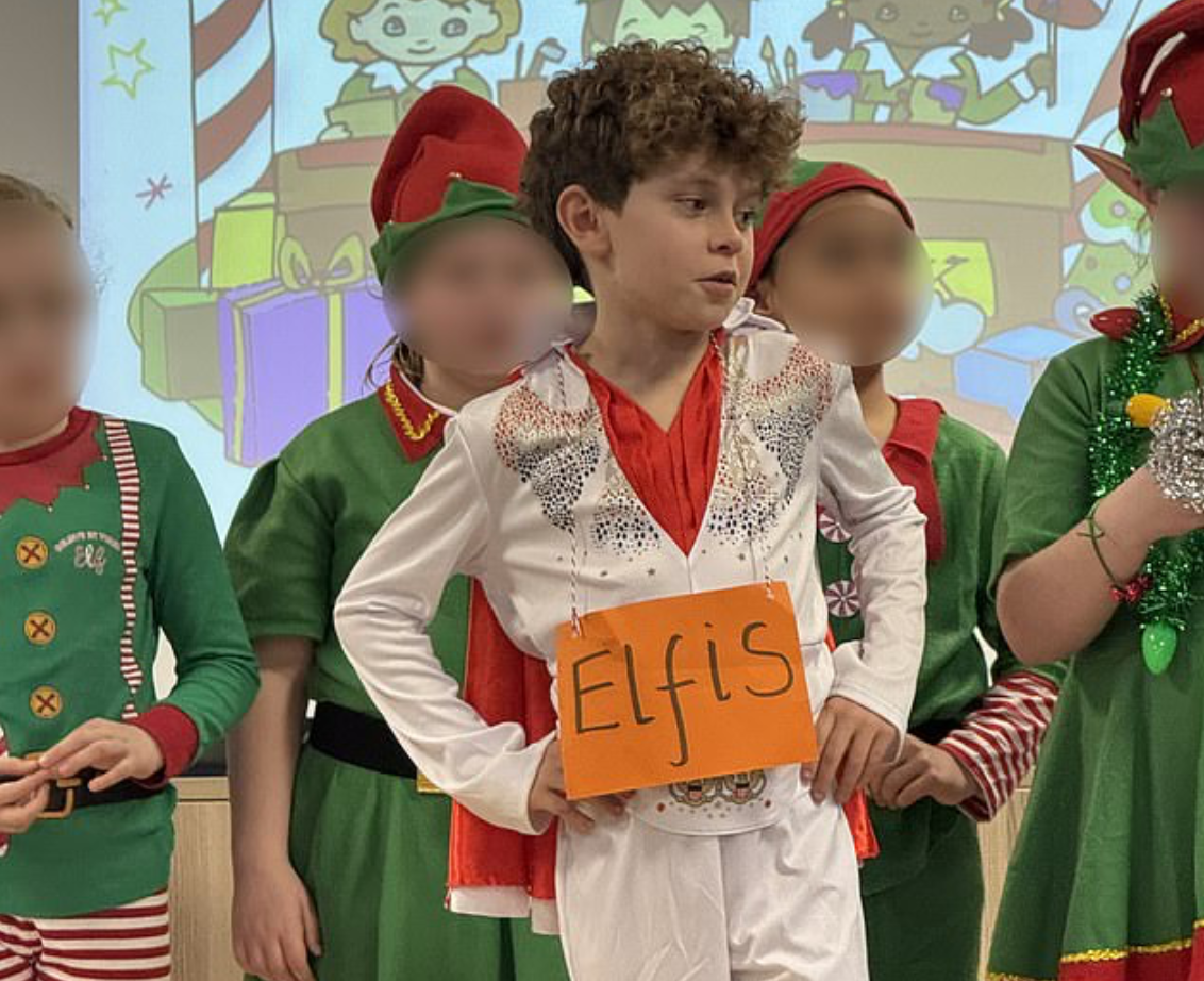 Элвис вместо эльфа: школьник в костюме певца на новогоднем представлении стал звездой в сети