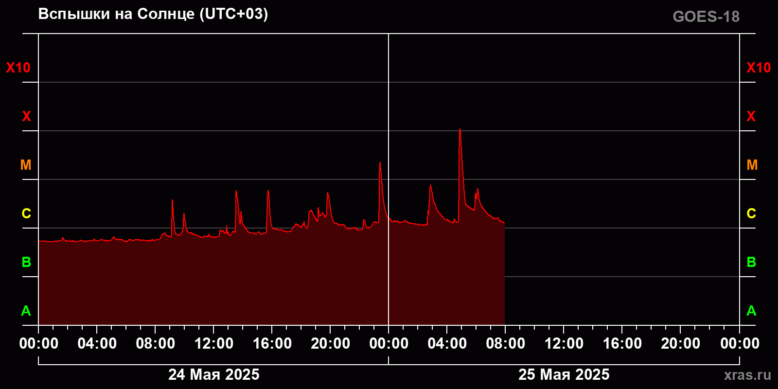 Класс X – это самый мощный уровень солнечных вспышек, способный вызывать геомагнитные бури на Земле. Цифра рядом с буквой X (в данном случае – 1.1) указывает на интенсивность вспышки. Чем выше значение – тем сильнее потенциальное влияние на магнитосферу нашей планеты.