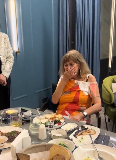 На записи видно, как Ескалиева принимает подарок, благодарит ребят, а в конце не сдерживает слез.