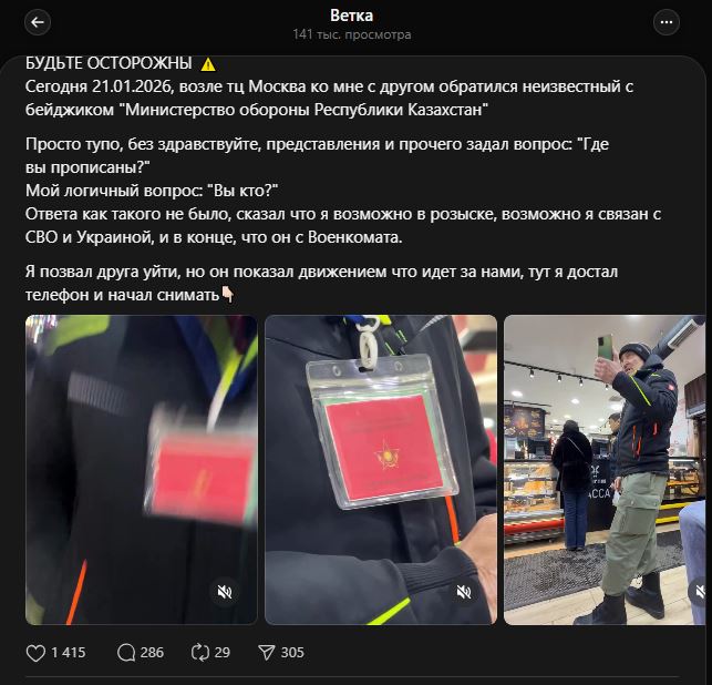 Житель города Алматы сообщил о неизвестном, который ходил по одному из торговых центров города с бейджиком Министерства обороны Казахстана и пугал прохожих, передает Liter.kz.