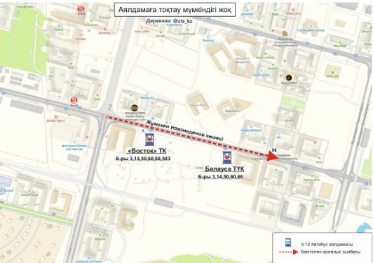 Временно изменена схема движения общественного транспорта в Астане из-за перекрытия проезда к остановочным пунктам “ЖК “Восток” и “Балауса”. Ряд автобусных маршрутов не осуществляют посадку и высадку пассажиров на данных остановках, передает Liter.kz.