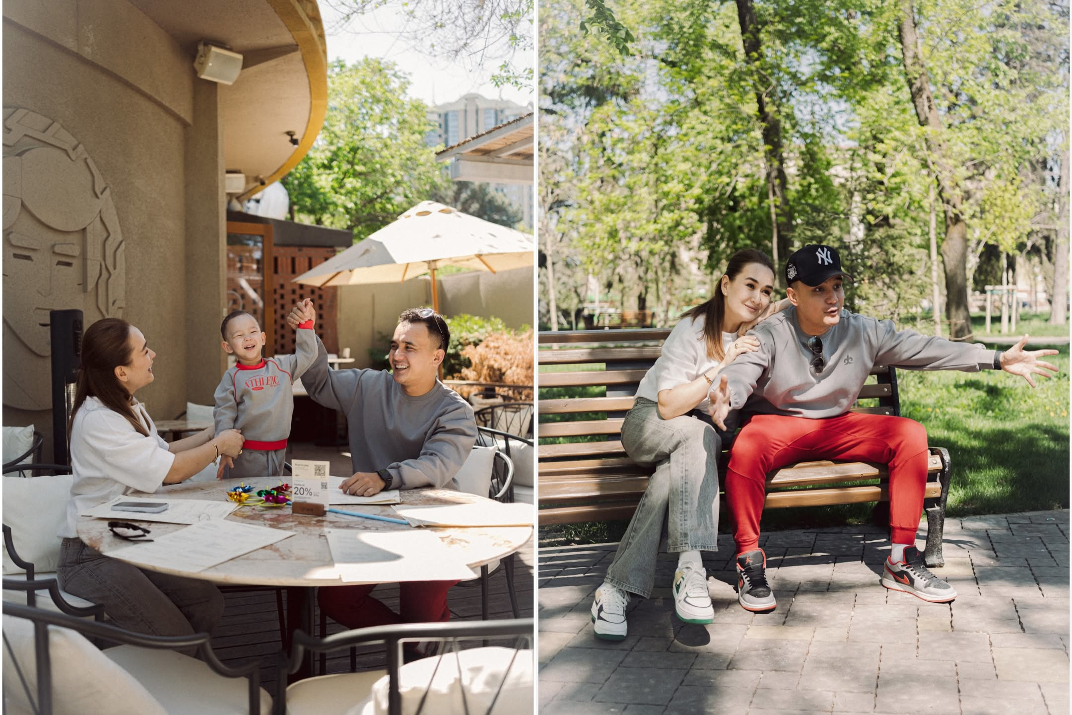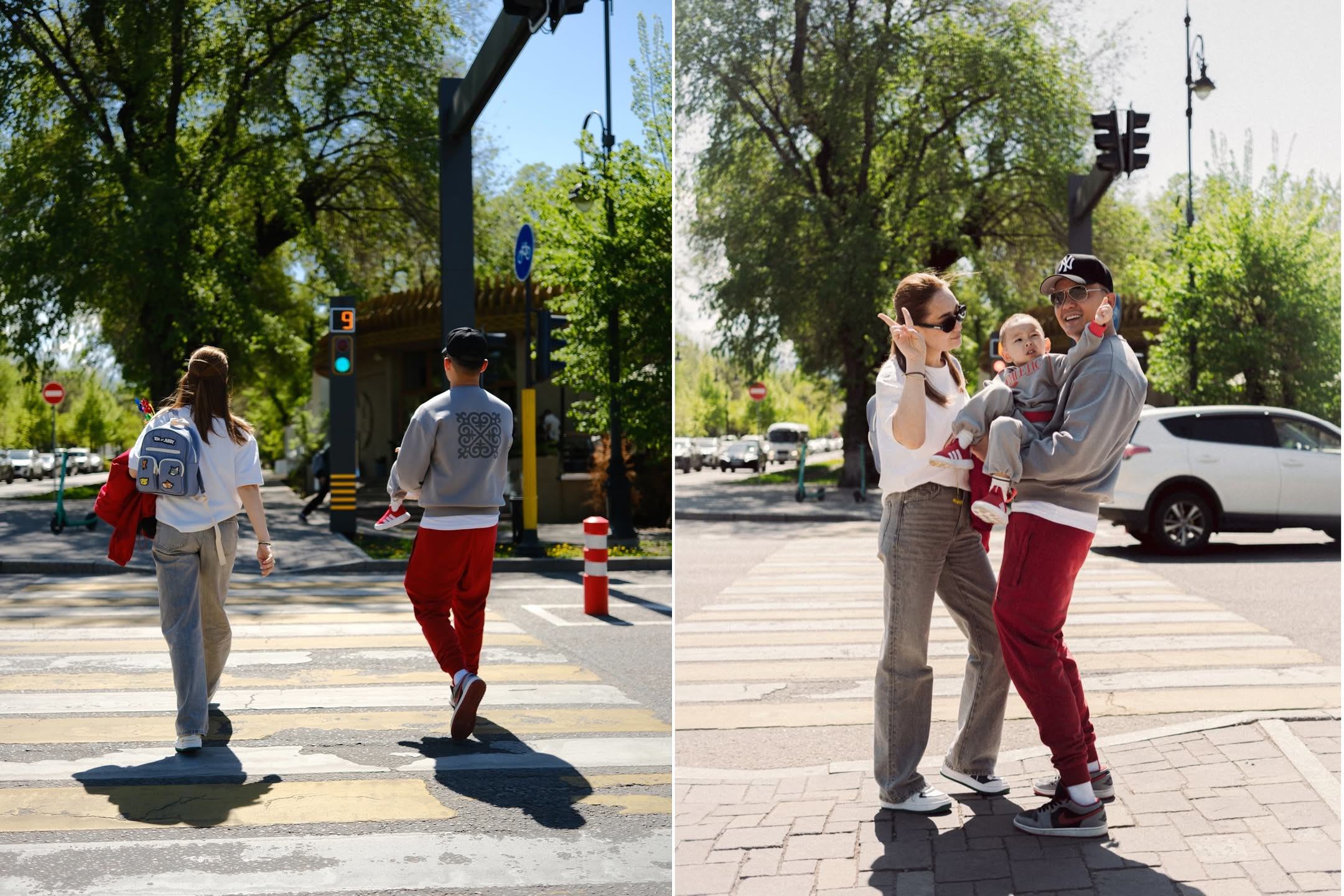 На фото заснято, как она с супругом Али Окаповым и сыном гуляет по городу в теплый весенний день.