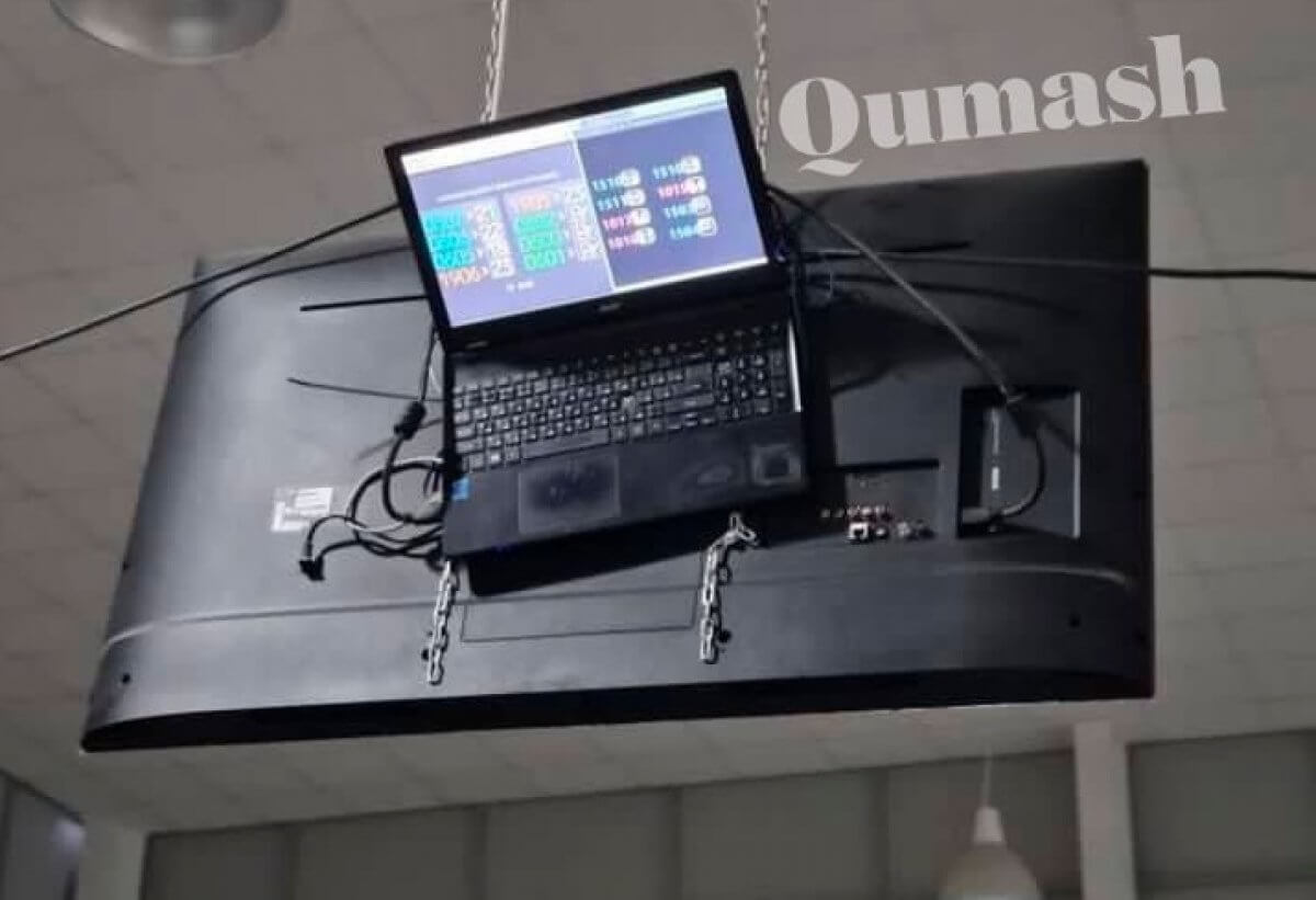 Telegram-канал Qumash опубликовал фото прикрепленного к монитору под потолком автоЦОНа в Уральске ноутбука, который рассмешил казахстанцев.