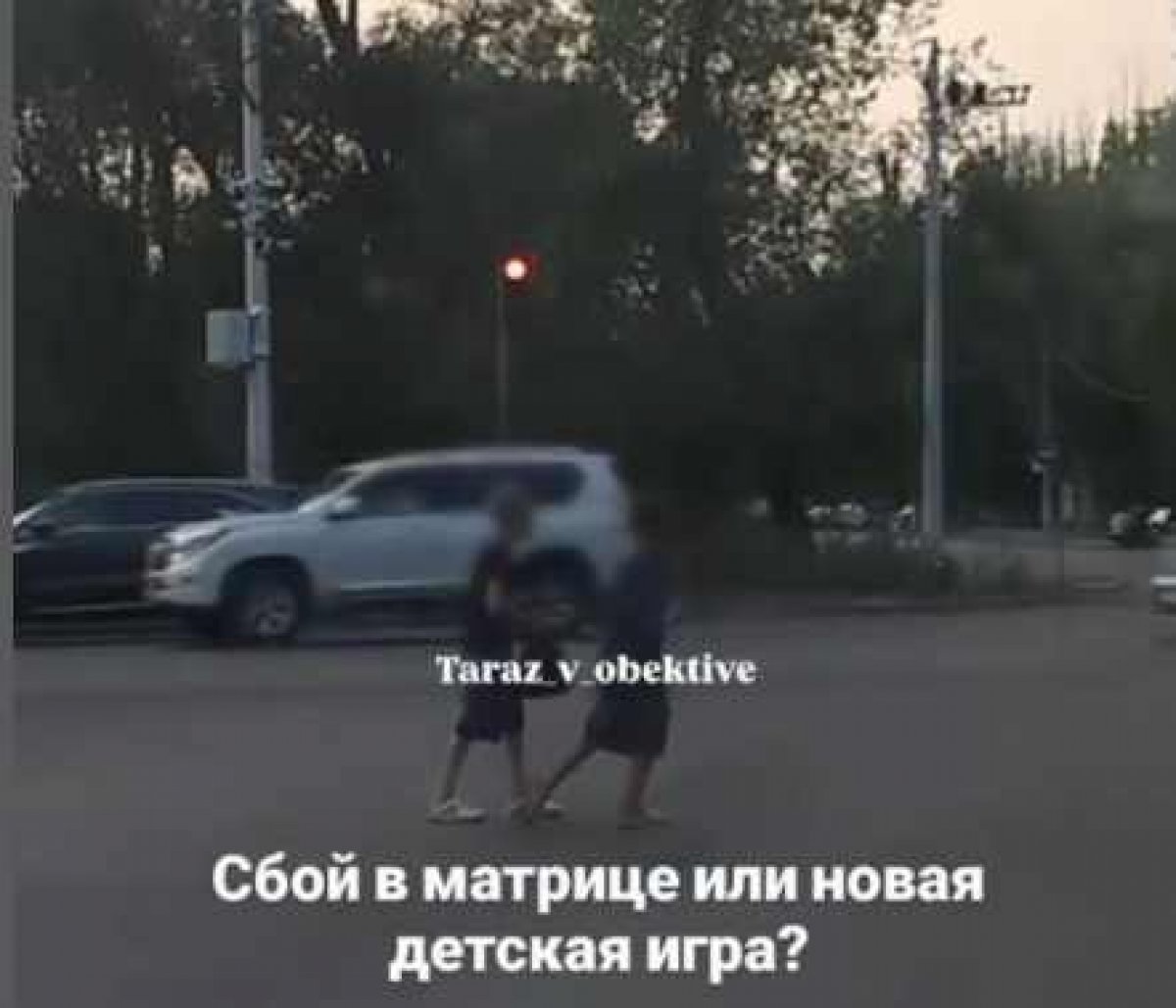 Кадры прокомментировали в ДП Жамбылской области. При мониторинге социальных сетей сотрудники полиции выявили двух школьников, которые вдруг замерли на пешеходном переходе, переходя проезжую часть дороги.