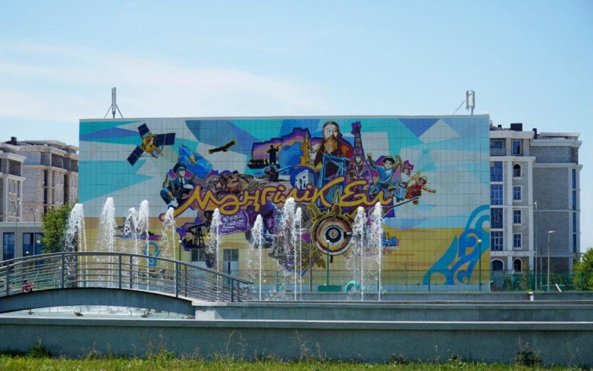 На мурале, который расположен на территории ЕХРО-2017 изображена карта всего Казахстана словно мозаика. Площадь монументального творения – 600 квадратных метров.