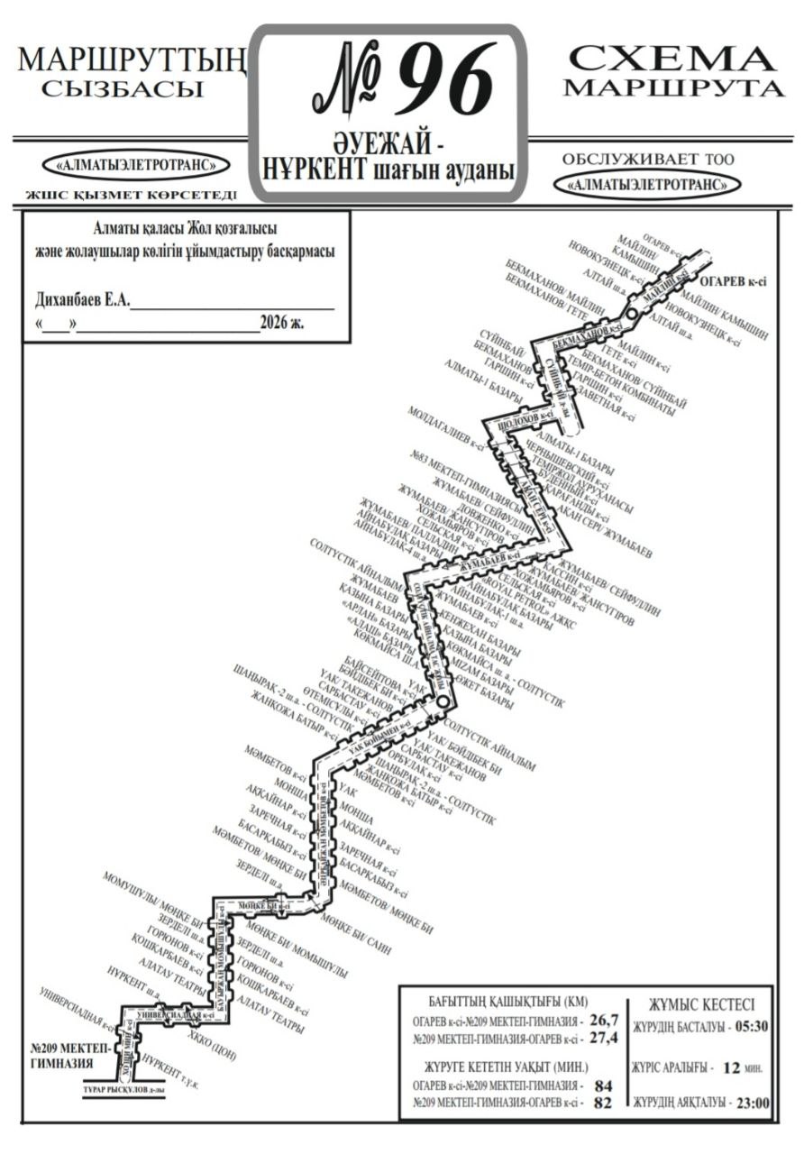 С 16 января в Алматы начинает работу новый автобусный маршрут № 96, который свяжет Международный аэропорт с микрорайоном Нуркент, передает Liter.kz.