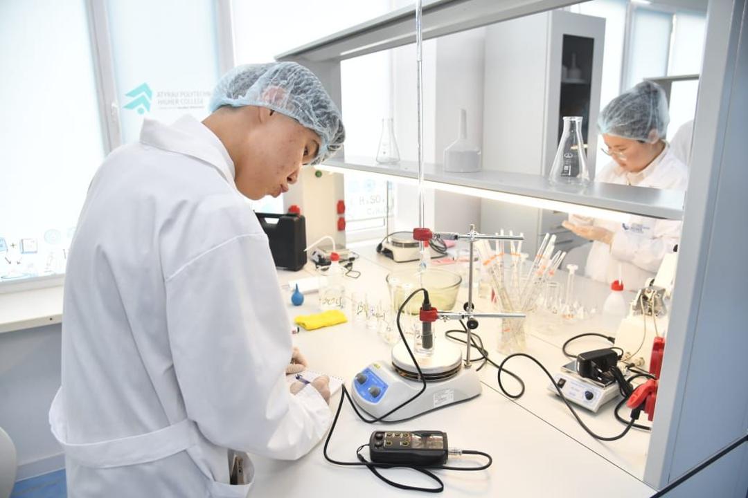Новый кабинет оборудован для проведения лабораторных работ по предмету “Органический синтез химических продуктов”. Учебное заведение оснащено современными установками, соответствующими международным стандартам.