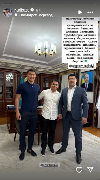 “Фотография на память со встречи с начальником департамента полиции Мангистауской области”, – подписал Нуралы Алип фотографии.