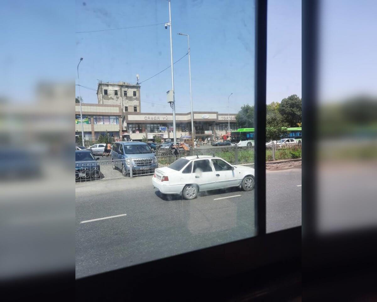Обнаженный мужчина купался около проезжей части в Шымкенте