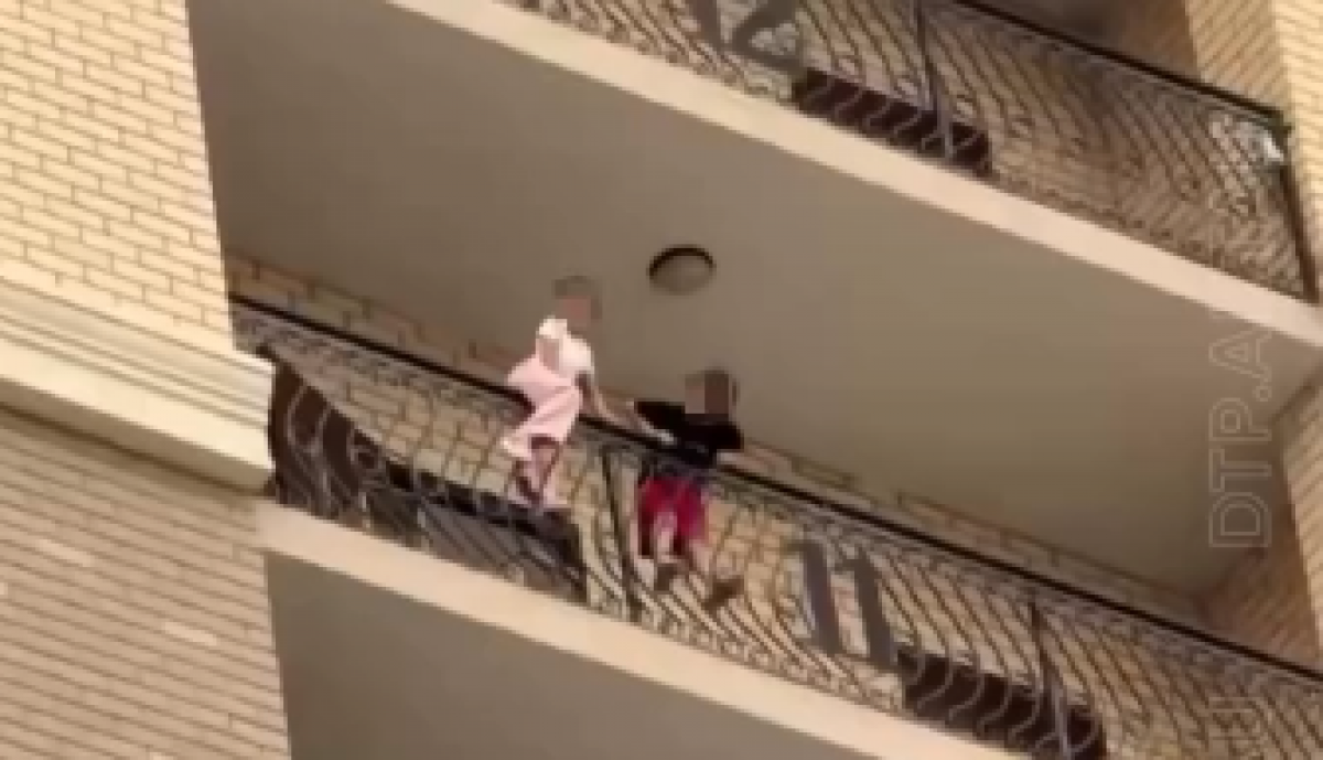 На кадрах видео, распространившемся в социальных сетях, дети сидят на перилах открытого балкона многоэтажки, на высоте 11 этажа.