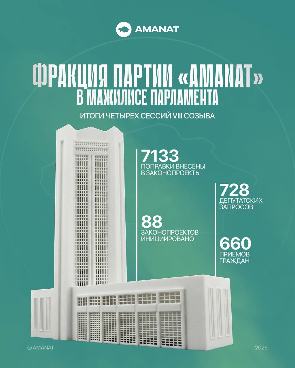 Именно системность от налогов и жилья до цифровизации и социальной политики формирует устойчивую законодательную повестку, в центре которой находятся интересы граждан, бизнеса и государства. Значительная часть этой работы сегодня реализуется при активном участии фракции AMANAT.